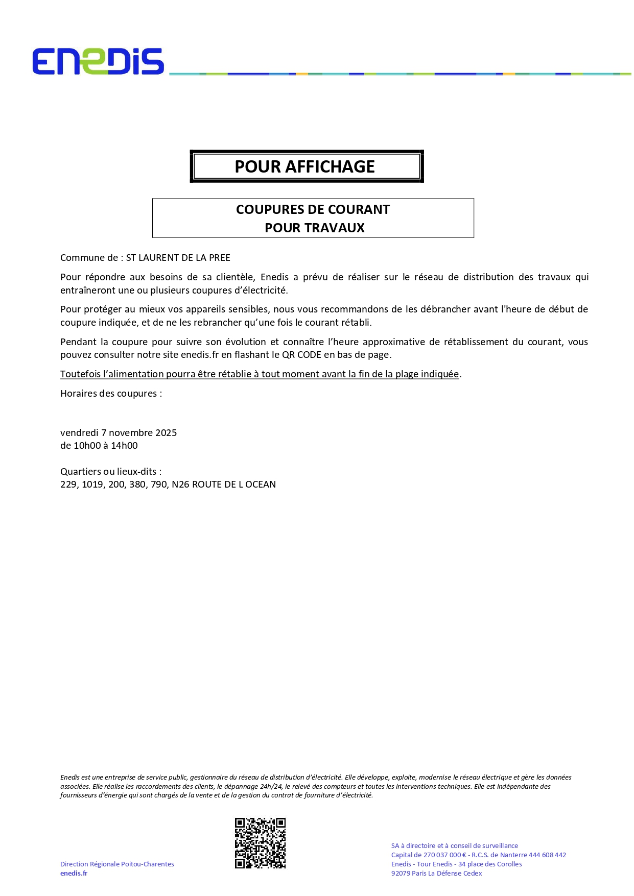 Actualités de Saint Laurent de la Prée coupure d’électricité programmée le 07/11/2025 Salon du Bien-Être 18 et 19 octobre 2025 La distribution de composteur continue ! Bourse multi collections du 5 octobre 2025 Modification du Plan Local d’Urbanisme La CARO vous accompagne dans la recherche de médecin traitant Voir toutes les actualités