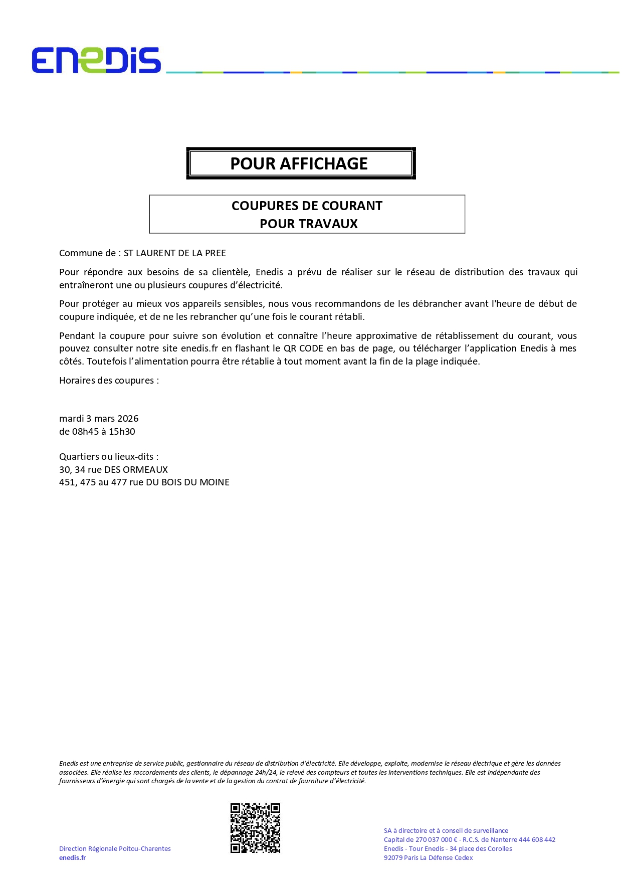 Actualités de Saint Laurent de la Prée Pièce de théâtre « Le procès » – le 01/03/2026 Coupure d’électricité programmée le 03/03/2026 Coupure d’électricité programmée le 18/03/2026 Modification n°1 du Plan Local d’urbanisme La distribution de composteur continue ! La CARO vous accompagne dans la recherche de médecin traitant Voir toutes les actualités