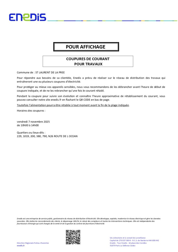 coupure d’électricité programmée le 07/11/2025Par y.lyvan / 10 octobre 2025 Facebook Twitter LinkedIn Email Imprimer