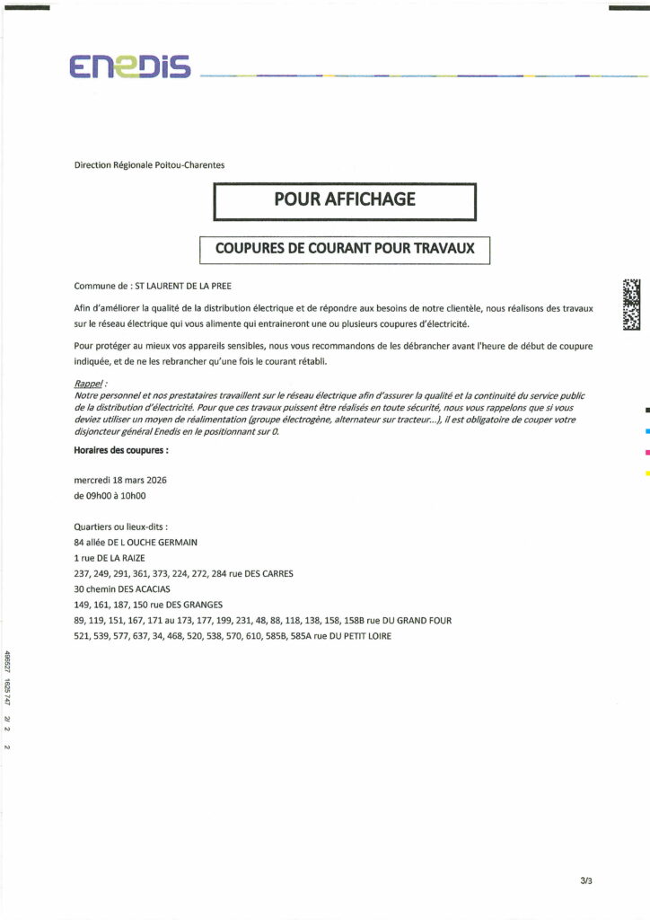 Coupure d’électricité programmée le 18/03/2026